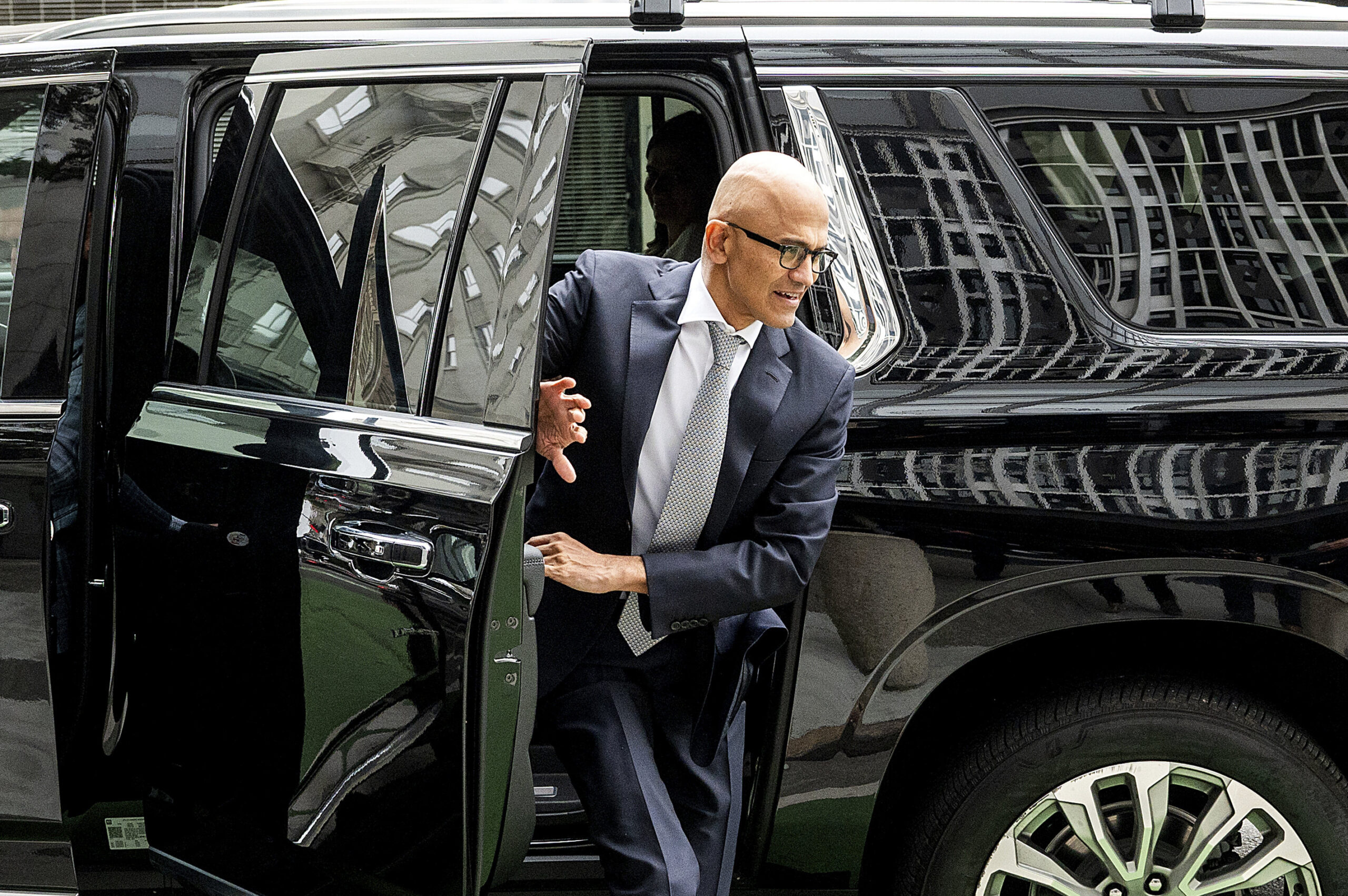 Microsoft CEO Satya Nadella arrives at the Phillip Burton Federal Building and U.S. Courthouse in San Francisco, on Wednesday, June 28, 2023. Microsoft is defending the company’s proposed $69 billion takeover of video game maker Activision Blizzard as federal regulators seek to block the deal. Credit: AP Photo/Noah Berger