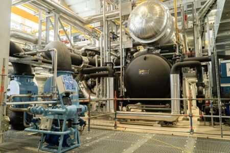 The Vienna heat pump plant is churning out district heat to up to 56,000 households. In a large hall on the outskirts of Vienna, shiny pipes…