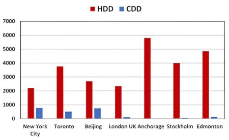 Chart representing heating degree days and cooling degree days by various key urban areas. Credit: James S. Cotton, Author provided As we move toward a cleaner…