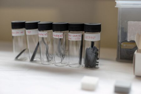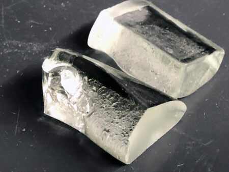 A sample of LionGlass, a new type of glass engineered by researchers at Penn State that requires significantly less energy to produce and is much more damage…