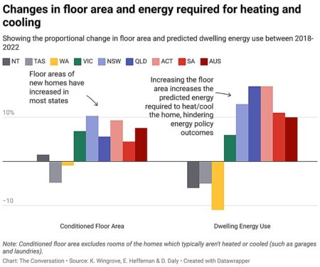 Credit: The Conversation New Australian homes are being designed bigger and so require more energy for heating and cooling, wiping out potential gains in energy efficiency,…