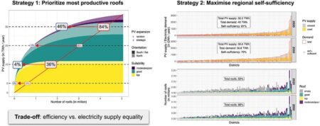 Graphs presenting the two strategies studied. Number of roofs needed to achieve a PV expansion target. Credit: 2023 EPFL / Alina Walch Martin Rüdisüli – CC-BY-SA…