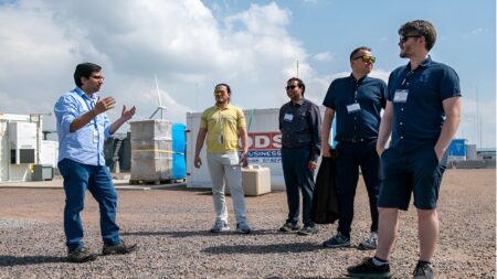 Mayank Panwar and Dany Tome (first and second from left, respectively) are studying how today’s hydropower plants could safely produce more energy by keeping their generators…