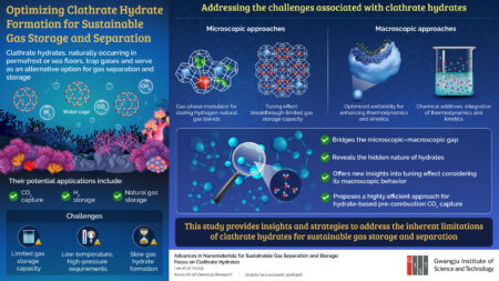 This study by GIST researchers showcases recent advances in clathrate hydrates, which could help address challenges in gas storage and separation applications. Credit: Youngjune Park, Gwangju…