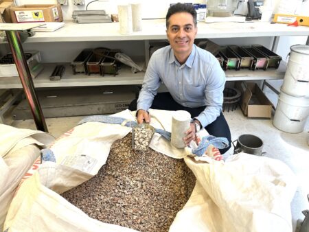 Dr Aliakbar Gholampour, Senior Lecturer in Civil and Structural Engineering, College of Science and Engineering, testing thecoarse aggregates at Flinders University’s Tonsley campus in Adelaide, South…