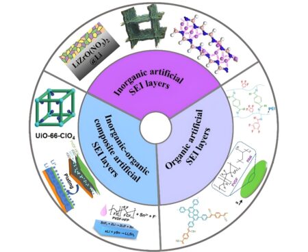 Each wedge consists of different constructions of electrode-electrolyte interfaces to contribute to a practical design overhaul of lithium metal electrodes. Credit: Yanyan Wang, University of Adelaide…