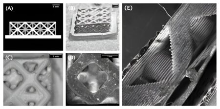Model (A) and photos of the ceramic structure 3D-printed by Skoltech researchers. It could improve the efficiency of fuel cells, a promising technology for cleaner fossil…