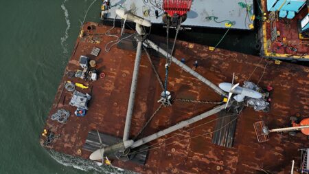 A new material could help make clean energy technologies, like the tidal energy turbines pictured here, even more sustainable. Credit: Paul Komosinski, NREL On a gray,…
