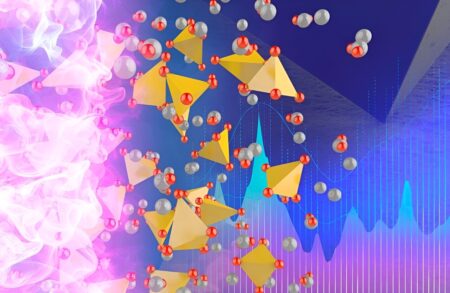 The image conceptualizes the processing, structure and mechanical behavior of glassy ion conductors for solid state lithium batteries. Credit: Adam Malin/ORNL, U.S. Dept. of Energy As…