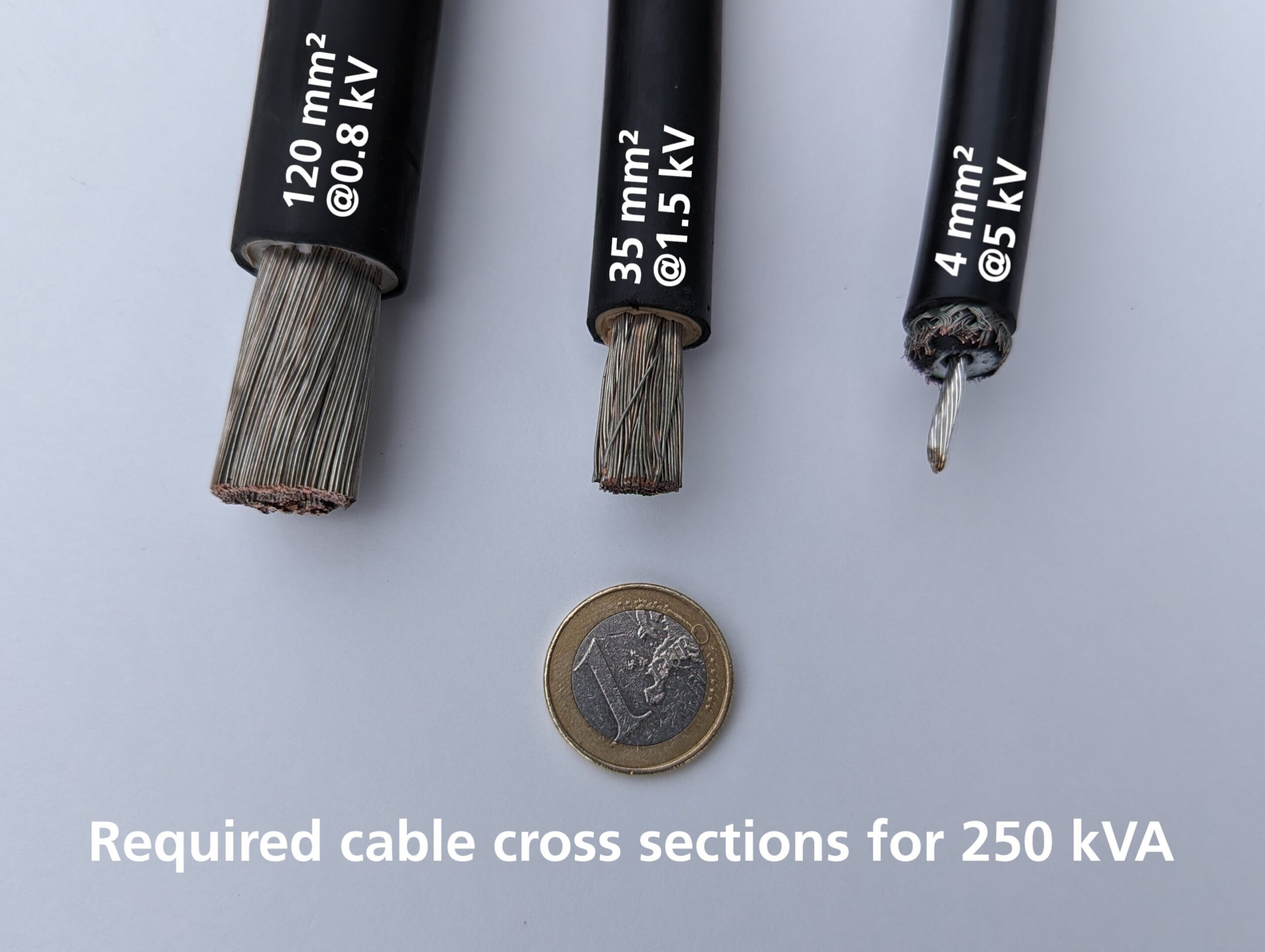 Higher voltage reduces the cable cross section. Credit: Fraunhofer ISE