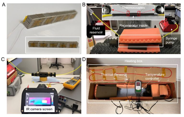 One approach is the development of a solid-state electronic heat pump. Such devices typically involve exposing ferroelectric material to an electric field, triggering polarization, which alters the material’s temperature. Devices using the approach can be designed to heat or cool the air around them. Unfortunately, despite much effort, a commercially viable electrocaloric heat pump has not materialized due to a variety of issues. The research team has taken a fluid-based approach and created prototype devices more efficient than conventional air conditioners.