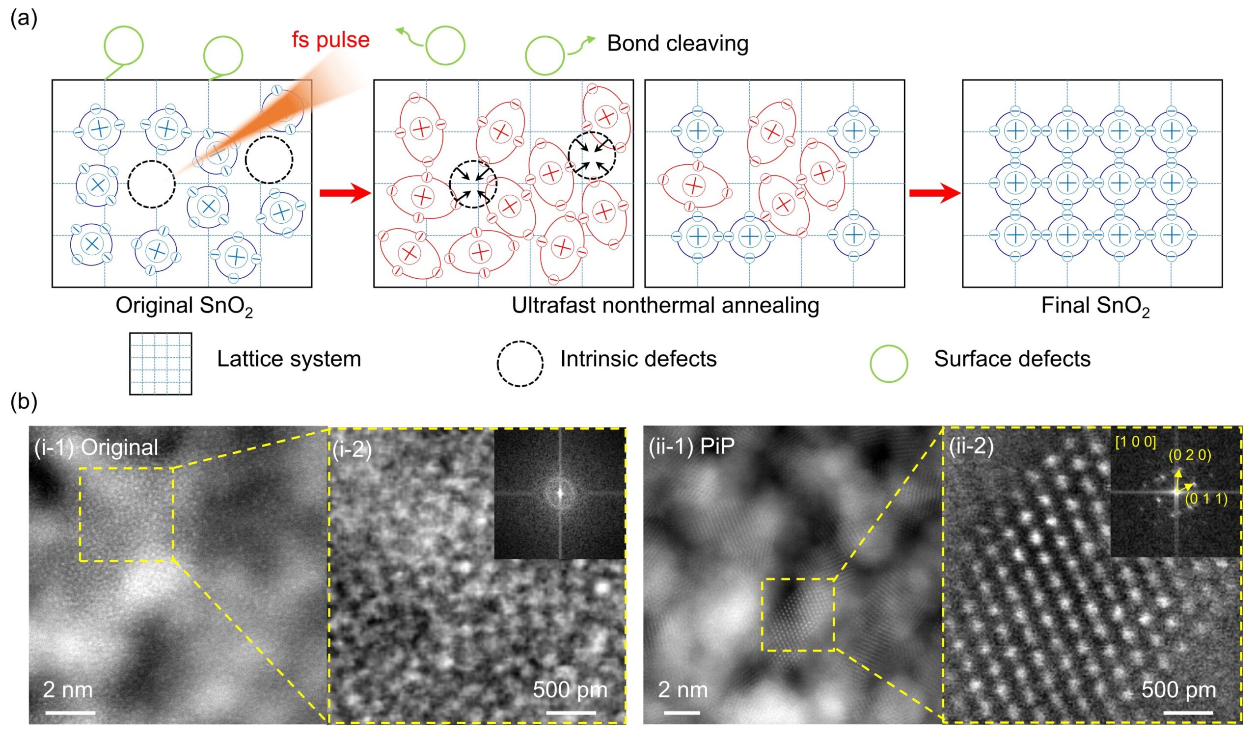 High-resolution transmission electron microscope analyses of SnO2 before and after the PiP were conducted by Nianyao Chai and Ruohan Yu. The team found that the PiP process leads to the SnO2 undergoing a transformation from the amorphous phase to the crystalline phase, thus improving the crystallinity of SnO2.