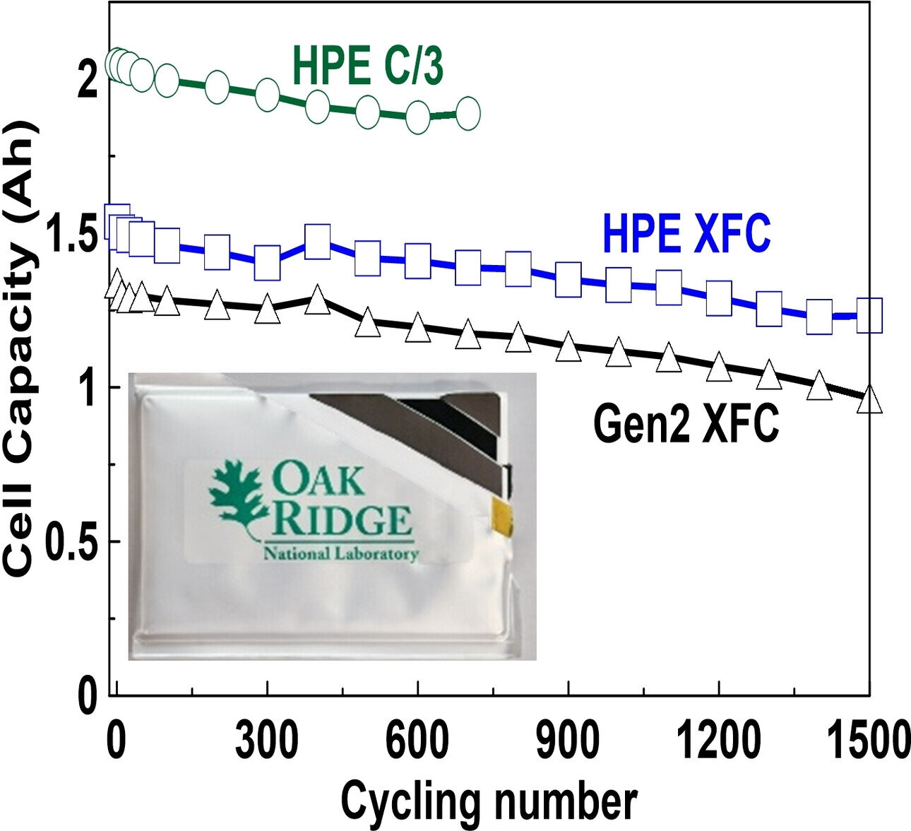 Project partners tested battery pouch cells made at ORNL’s Battery Manufacturing Facility to prove the battery’s safety and cycling characteristics. The paper is published in the journal Batteries & Supercaps.