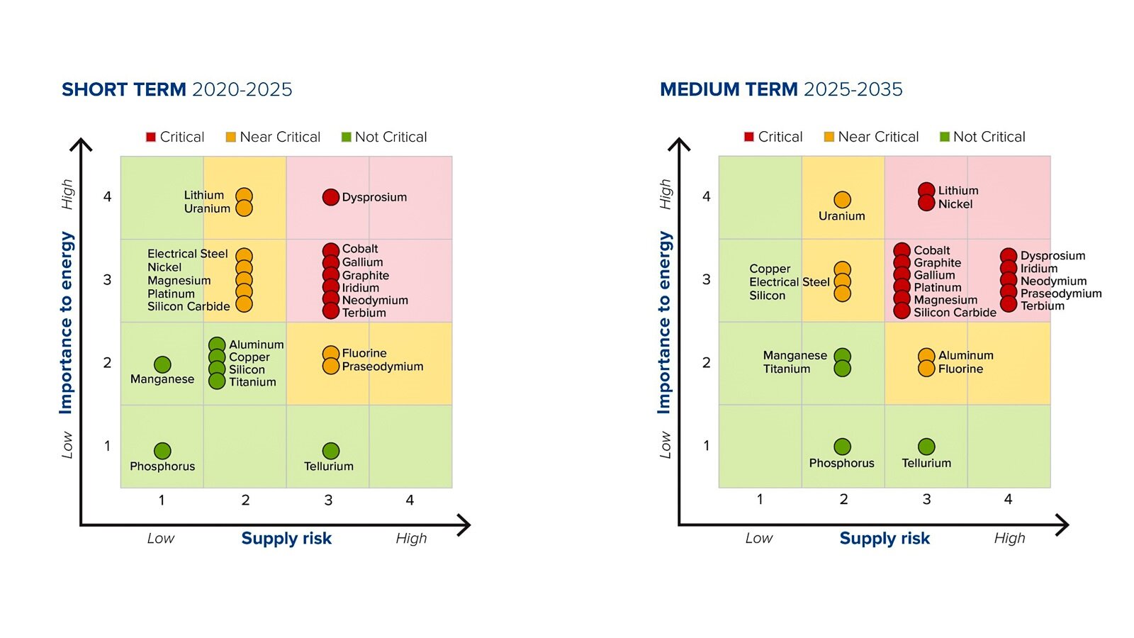 The report lists materials deemed critical and near-critical to clean energy and decarbonization technologies through 2035, along with insights about why certain materials may be less secure or particularly scarce. Findings from the report include supply chain risks from a global rise in use of electricity and a greater emphasis on renewable and green technologies, such as electric vehicles, wind turbines and LEDs.