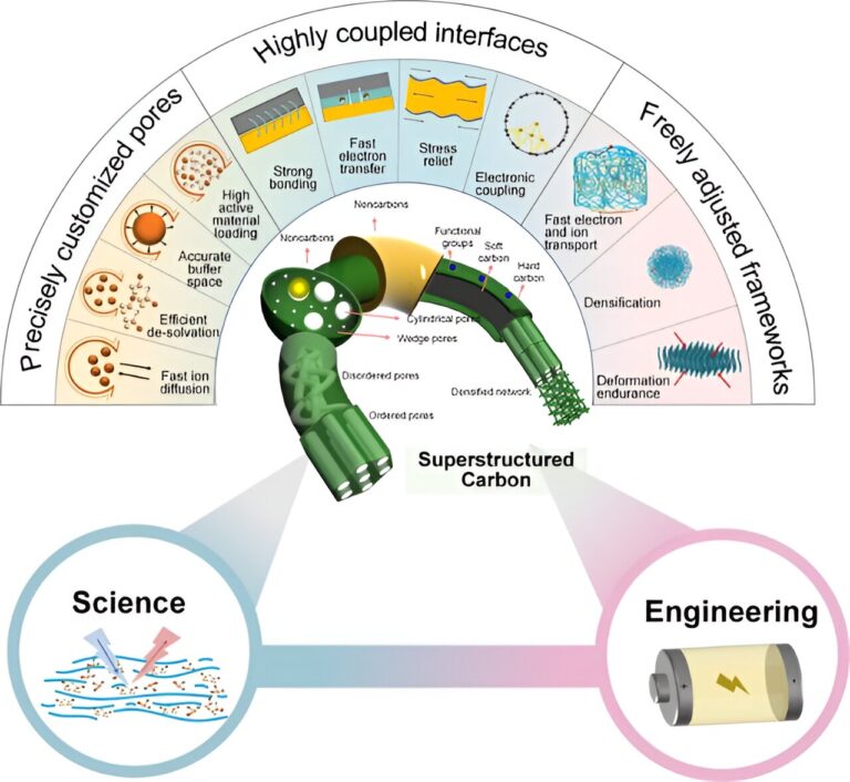 Superstructure carbons (SCC) are a possible way to use carbons in a more efficient and “green” way that can exceed the current performance and longevity of the standard materials in energy storage and conversion devices. Researchers have published the findings in Energy Materials and Devices.