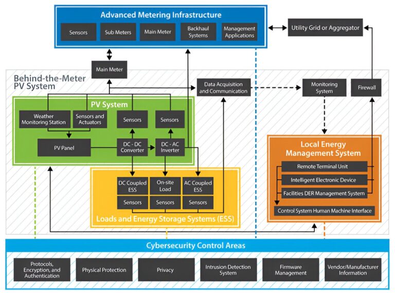 This diagram shows a detailed look at behind-the-meter solar PV system elements and their associated cybersecurity controls. Credit: 2023 IEEE PES Innovative Smart Grid Technologies Latin America (ISGT-LA) (2023). DOI: 10.1109/ISGT-LA56058.2023.10328214