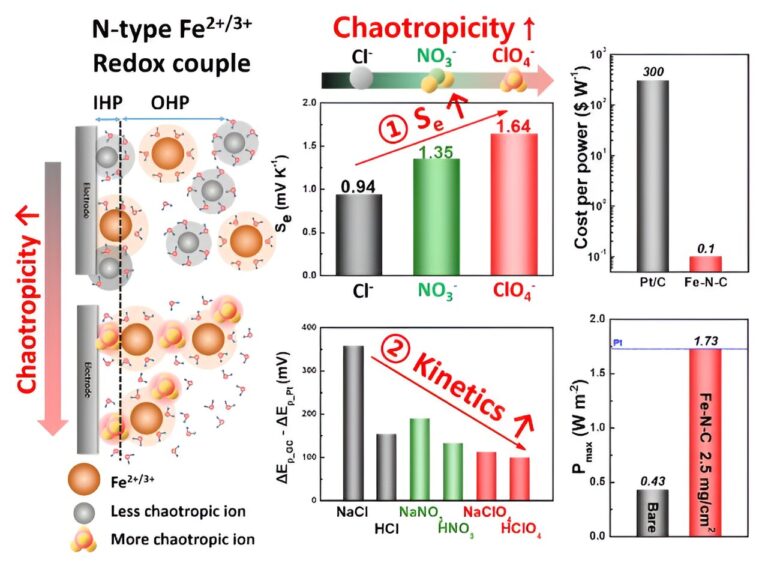 Sang‐Mun Jung et al, Fe─N─C Electrocatalyst for Enhancing Fe(II)/Fe(III) Redox Kinetics in Thermo‐Electrochemical Cells, Advanced Functional Materials (2023). DOI: 10.1002/adfm.202304067
