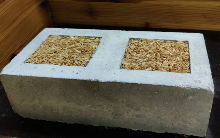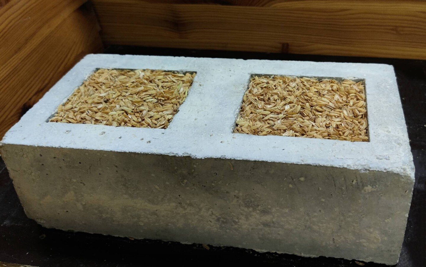 Concrete component made of recycled aggregates and rice husk ash with rice straw insulation. Credit: Fraunhofer-Gesellschaft