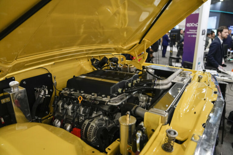 A hydrogen combustion engine designed by Motul in conjunction with GCK Battery is seen on display during the CES tech show Tuesday, Jan. 9, 2024, in Las Vegas. Credit: AP Photo/Ryan Sun