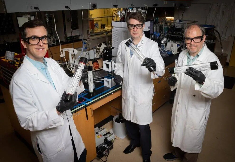 “I had to go deposit a check at the bank, and I went through the drive-through. They had the old pneumatic tubes that come down to transport documents,” said Ryan Lively, Thomas C. DeLoach Professor in Georgia Tech’s School of Chemical and Biomolecular Engineering (ChBE). “There are not many times you have a light bulb moment in your career, but I saw the tubes and I realized, we could put the fibers in something like a bank teller tube canister.