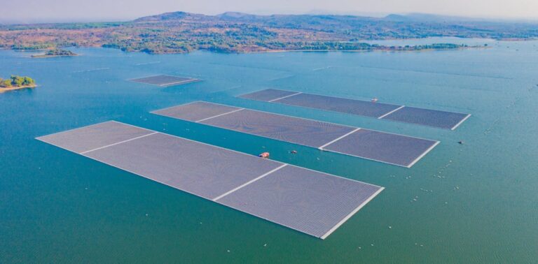 Floating solar panels can also be placed on inland lakes and reservoirs. Inland floating solar has large potential and is already growing rapidly.