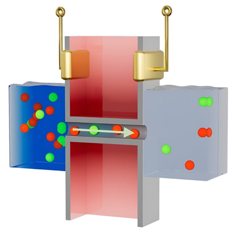 Leburton’s group designed a nanoscale semiconductor device that takes advantage of a phenomenon called “Coulomb drag” between flowing ions and electric charges in the device. When the ions flow through a narrow channel in the device, electric forces cause the device charges to move from one side to the other creating voltage and electric current.