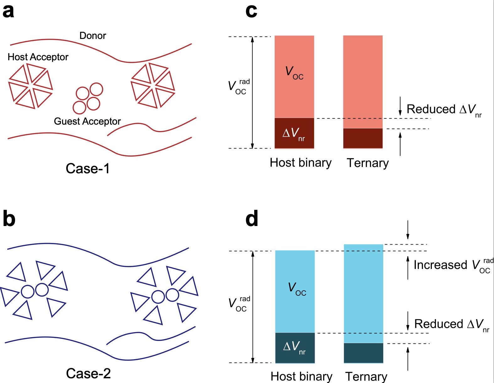 So far, to improve the open-circuit voltage of ternary organic solar cells, researchers primarily proposed using a third component that mixed well with the host binary blend (i.e., ensuring that these two components had a high miscibility). The recent work by Wang and his colleagues introduces alternative design considerations that could help to reduce voltage losses in this promising class of solar cells, which focus on two other key properties of the third integrated material.