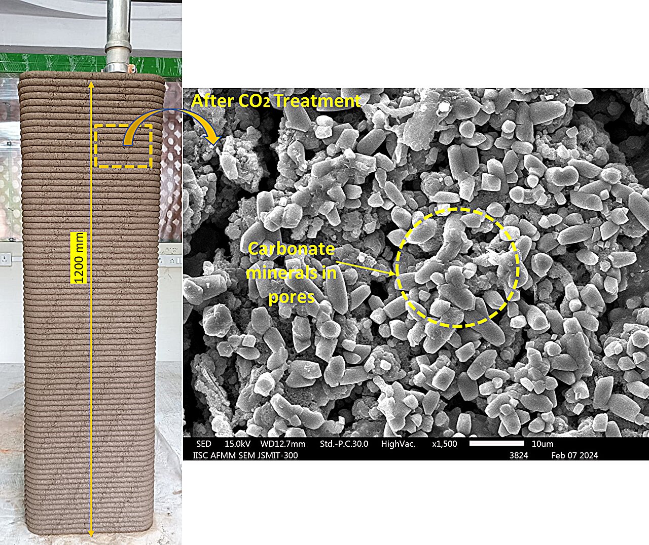 To address such challenges, researchers at the Center for Sustainable Technologies (CST), Indian Institute of Science (IISc), are exploring ways to store carbon dioxide from industrial flue gas in excavated soil and C&D waste. These materials can then be used to partially replace natural sand. This would not only reduce the environmental impact of construction materials but also impart properties that can enhance their use for construction.