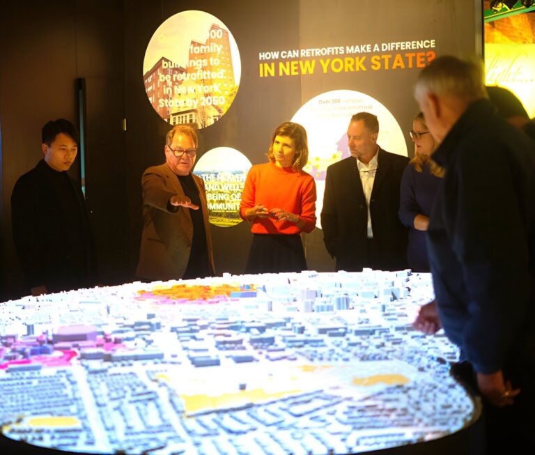 The exhibit demonstrates how retrofitting can improve thermal comfort for occupants while realizing cost savings on monthly energy bills and provide fresher air to breathe inside and out. Through interactive, dynamic features, the exhibit also locates residential buildings of all types—from multifamily to single-family homes—to show where and how retrofits can support the health and vibrancy of all Syracuse neighborhoods.