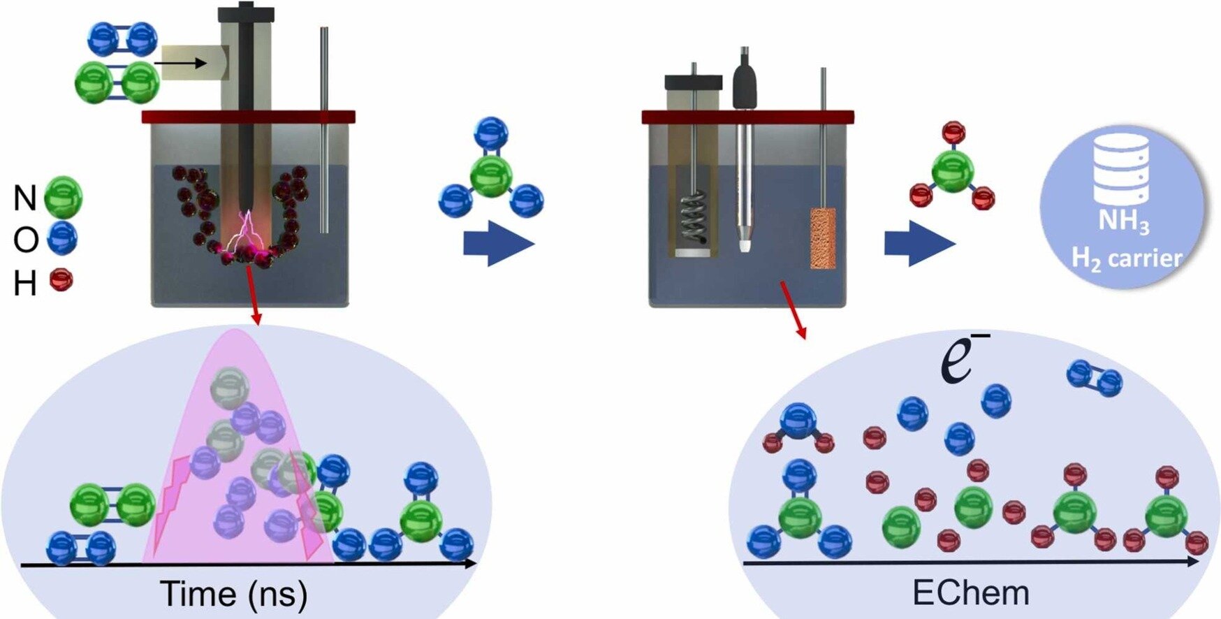 Jing Sun et al, Sustainable ammonia production via nanosecond-pulsed plasma oxidation and electrocatalytic reduction, Applied Catalysis B: Environmental (2023). DOI: 10.1016/j.apcatb.2023.123426