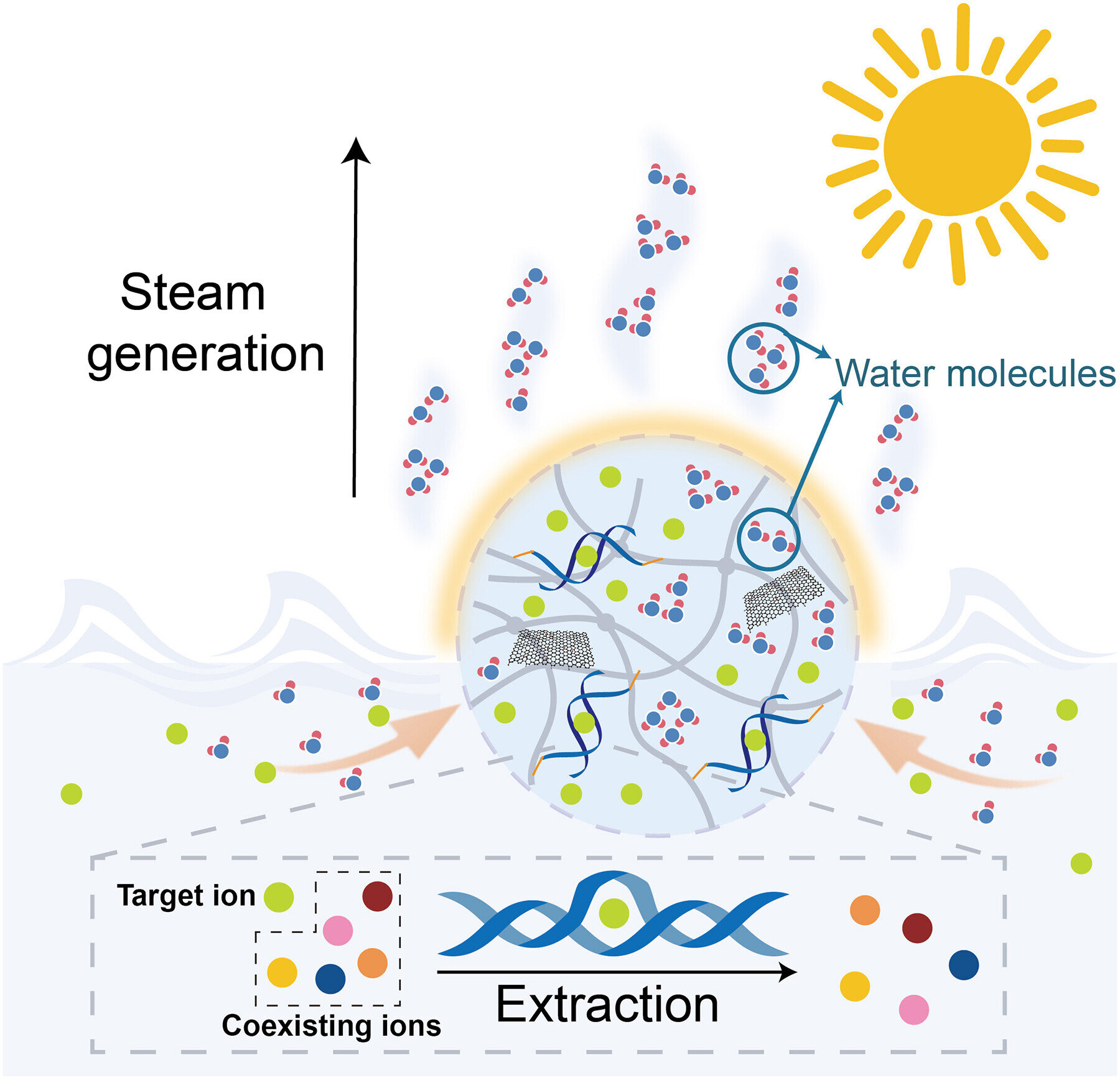 The team introduced DNA structures to improve the evaporation efficiency of the platform and facilitated the hydrogel with specific metal ion extraction properties for metal ion extraction under illumination. The smart DNA hydrogels are promising for freshwater harvesting and uranyl extraction from seawater, and for uranyl-enriched nuclear wastewater treatment.