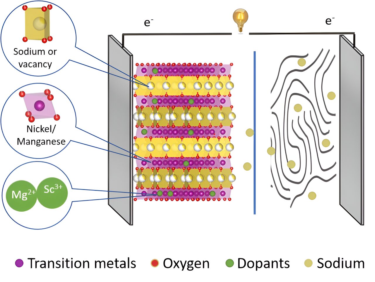 Sodium-ion batteries still have a number of weaknesses that could be remedied by optimizing the battery materials. One possibility is to dope the cathode material with foreign elements. A team from HZB and Humboldt-Universität zu Berlin has now investigated the effects of doping with scandium and magnesium.