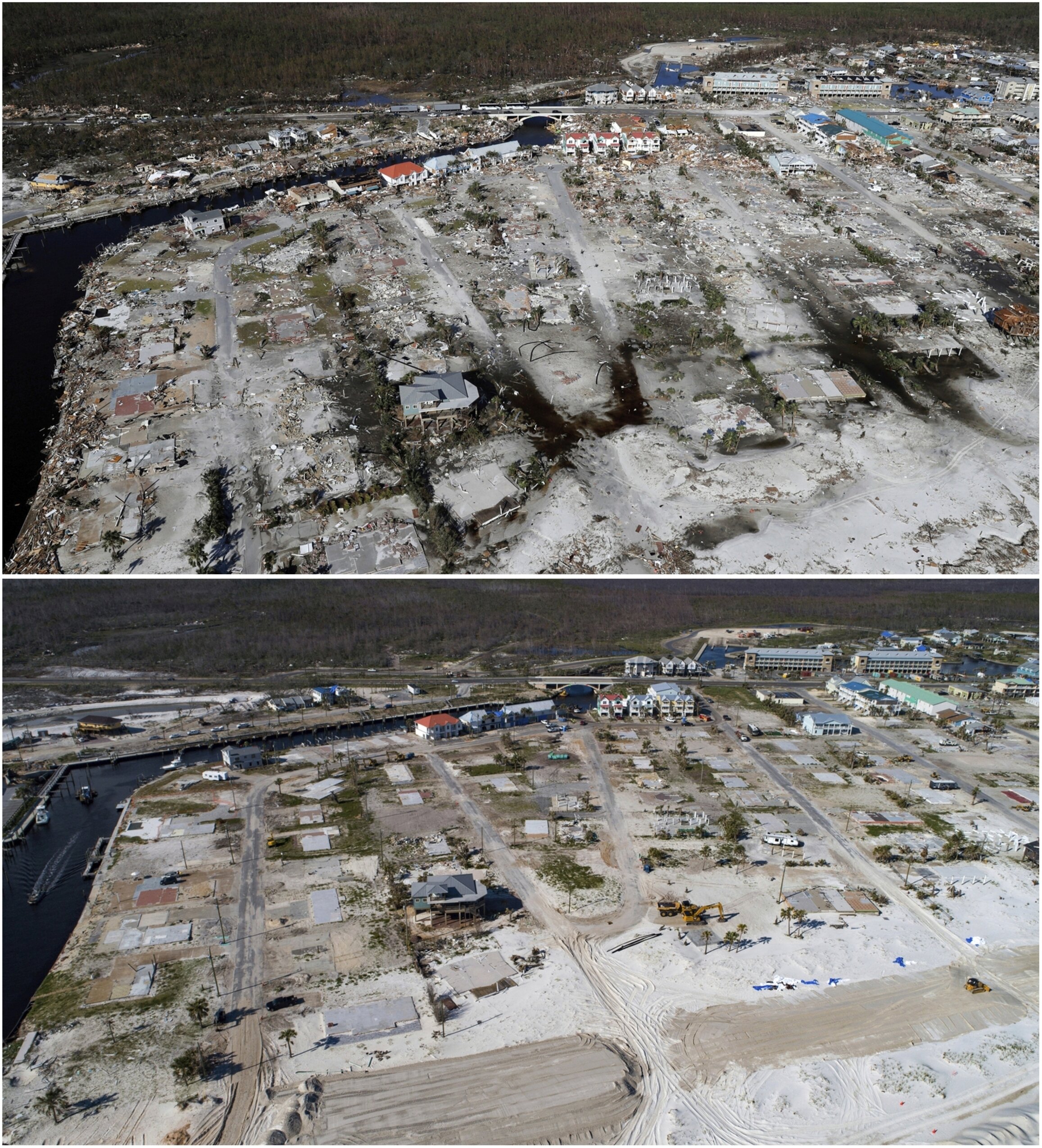 Devastation from Hurricane Michael is visible including the area around Bonny Paulson’s home, center top, in Mexico Beach, Fla., Friday, Oct. 12, 2018. Some developers are building homes like Paulson’s with an eye toward making them more resilient to the extreme weather that’s increasing with climate change, and friendlier to the environment at the same time. Credit: AP Photo/Gerald Herbert