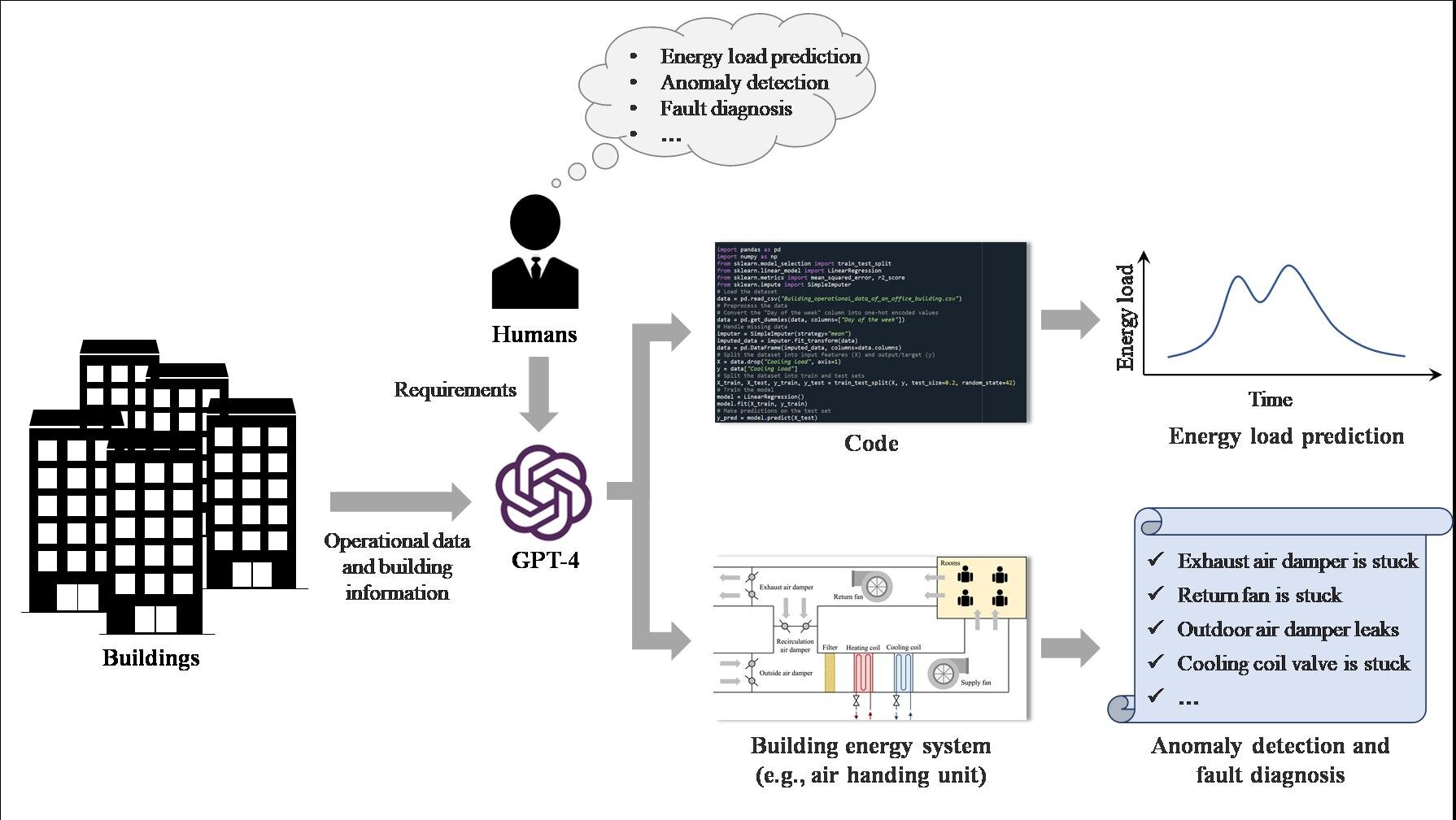 “Additionally, GPT-4 offers reliable and precise explanations for fault diagnosis and anomaly detection outcomes. By automating coding and data analysis tasks, GPT-4 effectively liberates humans from tedious work, resulting in a more accessible and cost-effective approach to data-guided building energy management,” adds Zhang.