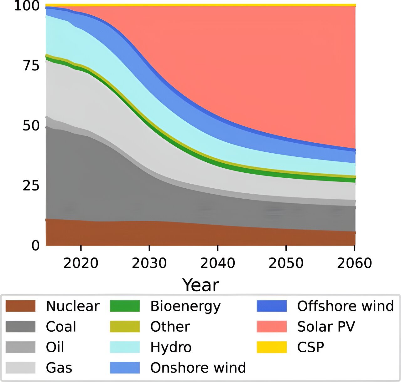 “Using three models that track positive feedbacks, we project that solar PV will dominate the global energy mix by the middle of this century.”