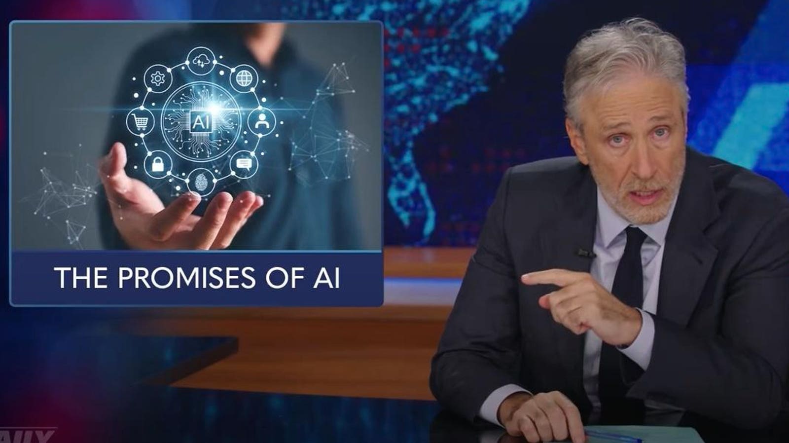 But as much laughter as Stewart’s segment generated, it focuses largely on his serious skepticism of the divide between what AI players who stand to make billions from the technology say it will do—like manage diseases and address climate change—and what it actually does and will do. And how that will affect workers.