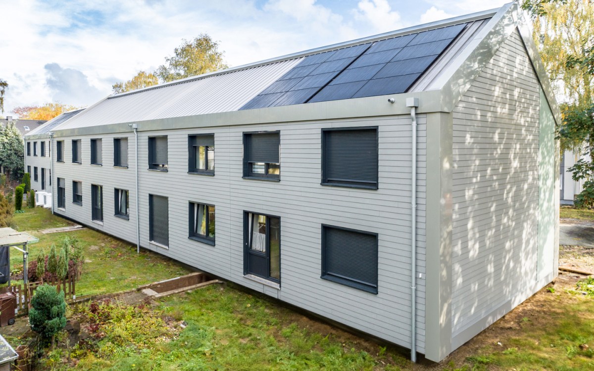 Once a site is prepped, which includes having cranes in place to do the necessary hoisting of facades, PV components etc, the actual slotting together and fixing of the panels and the installing and connecting of new services is quick — four to six weeks, according to Heisenberg. Although the full construction project process takes longer (15 weeks) owing to the need to prep the site.