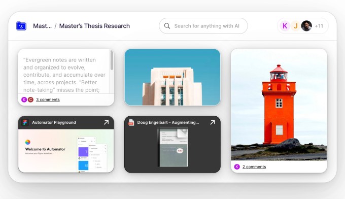 “We’ve designed it for the kind of practical reality of: people are busy. People, actually, in reality, are not organized,” says Bree. “And also, information lives in so many places. You take a normal tool like Notion, and it’s a clean slate. But what about my bookmarks? What about my screenshots? What about all the other places information lives? We’ve taken this new approach where it’s a home for all information…our ambition is to make every place your information lives connectable,” he adds.
