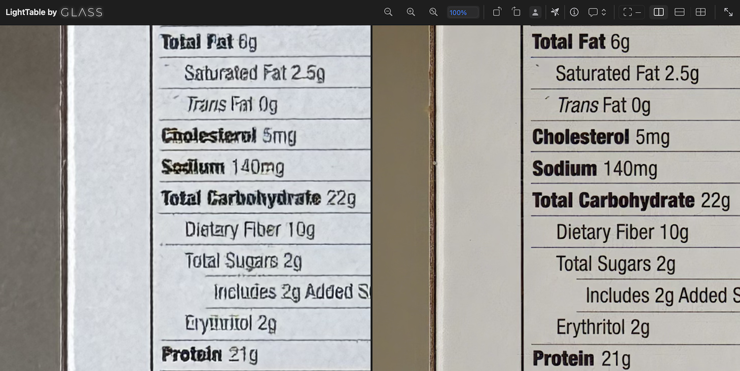 Even Apple, he pointed out, doesn’t have a full neural image stack, only using it in specific circumstances where it’s needed, and their results (in his opinion) aren’t great. He provided an example of Apple’s neural ISP failing to interpret text correctly, with Glass faring much better: