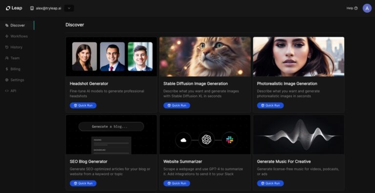With the availability of different types of Generative AI models increasing, more businesses are including features such as summarization, prompt-based image generation and even music-making in their solutions. Leap AI is building a solution for these companies to easily integrate AI-powered workflows or even build their own using an easy process.