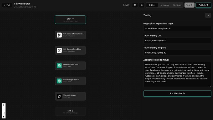The company said it is investing resources into revamping its workflow builder to replace a fixed-step approach with a chain of thought reasoning to achieve a goal. Leap AI is also working on improving context awareness of its workflows so it can leverage previously generated results.