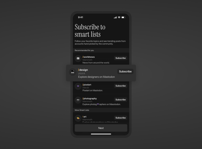 Mammoth will also integrate with Flipboard’s editorial news desks, the social magazine app’s effort to curate news across topics from around the web via accounts like News, Tech, Culture, and Science. And it’s partners with Newsmast, another curator of news and communities on Mastodon, as well as with Press.coop, which imports the feeds from popular news websites into Mastodon. These integrations allow Mammoth 2 to create a number of other “smart lists” including those for News, World News, Business, Tech, Environment, and Nature.