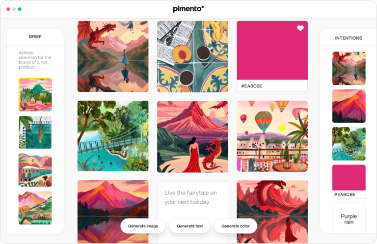 What makes Pimento different from using an off-the-shelf image-generating AI model is that everything you generate in Pimento is tailored to your initial brief — it becomes a sort of creative companion. In addition to that, you can also iterate on Pimento’s output.