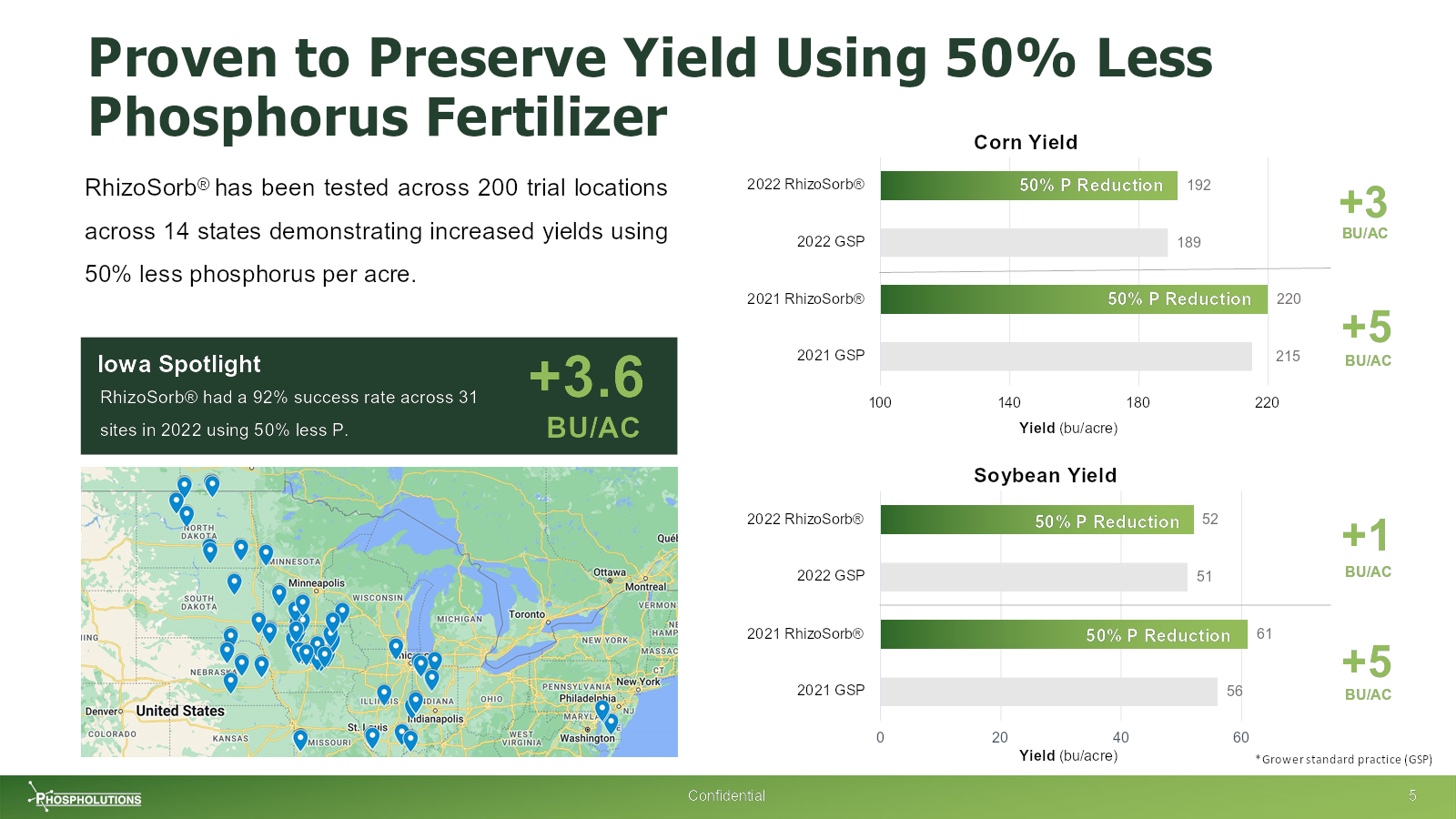 Phospholutions’ RhizoSorb is more expensive than the alternatives and the deck addresses that in two ways: by showing that the product is more effective, and therefore, you have to use less to get superior yields. The deck spends a lot of time on this point. I’m assuming that’s the result of the team getting a lot of pushback on the pricing.