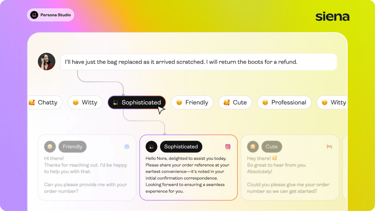 However, Negrau and Popovici say Siena stands apart in three ways: First is its AI Personas feature that enables merchants to create one persona that speaks their brand’s unique voice and style on social media, while utilizing a more professional persona for email.