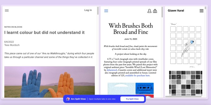 Arc showed off a shareable Split View with a collection of links that showcase design inspirations. Again, these URLs begin arc.net and are then followed by /split and a unique identifier.