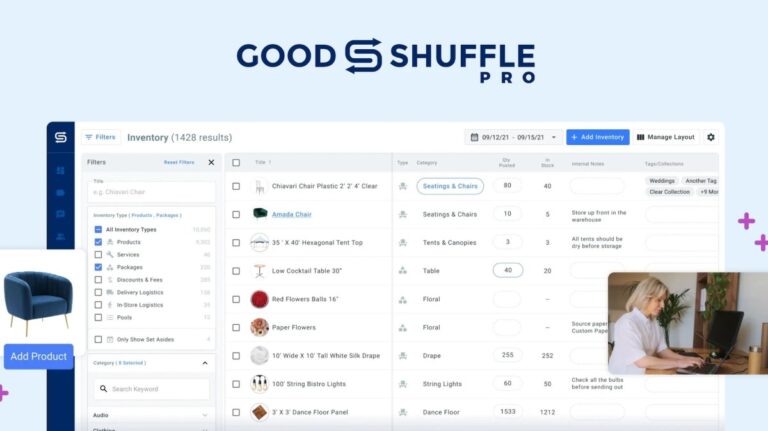In all, the Goodshuffle Pro vertical SaaS tool includes a single dashboard for rental and event production companies to track inventory, automate sales and streamline growth by being able to manage invoices, contracts, schedules and payments from one place.
