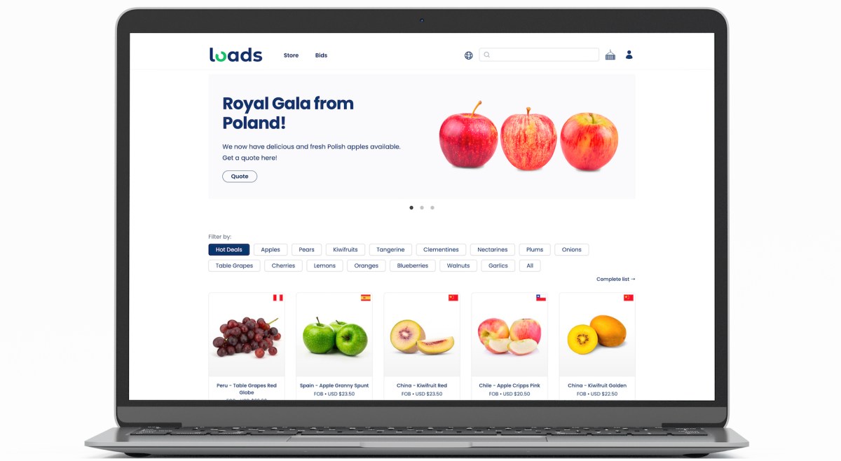 The company offers over 15 products, including apples, grapes and kiwi, of which the varieties give Loads more than 70 SKUs. Gil expects to market 1.4 million kilograms of food monthly through Loads’ platform by the first quarter of 2024.